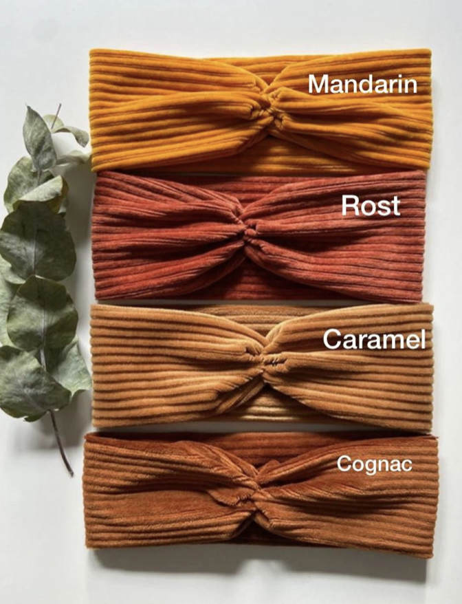 Haarband aus Breitcord in Rost, Caramel und Cognac